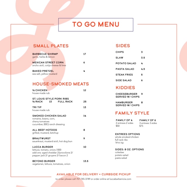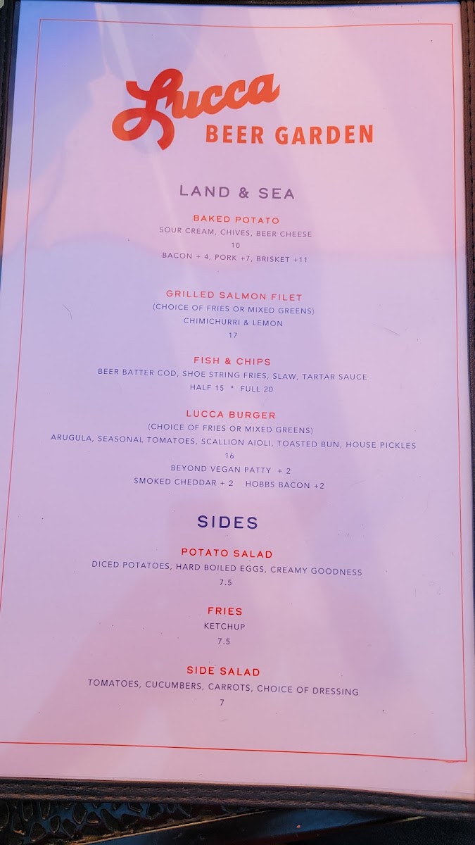Lucca Bar & Grill Menu
